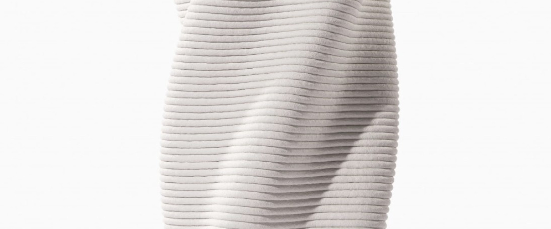 Die gerillte Oberflächenstruktur ist typisch für die 3D-Betondruck Technologie. Eine glatte Oberfläche lässt sich nur durch eine Nachbearbeitung erreichen (ausspachteln oder verputzen der Rillenstruktur).